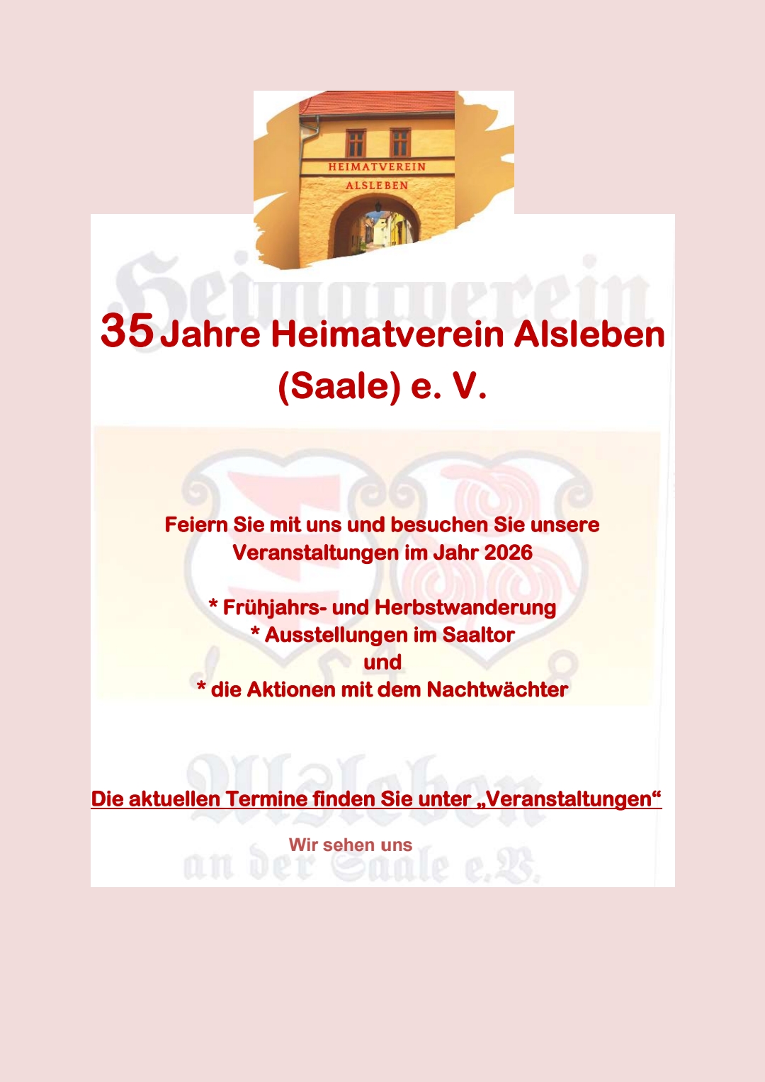 Startseite Herzlich willkommen beim Heimatverein Alsleben (Saale) e.V. Aktuelles vom HeimatvereinNichts gefunden 1-0 von 0
